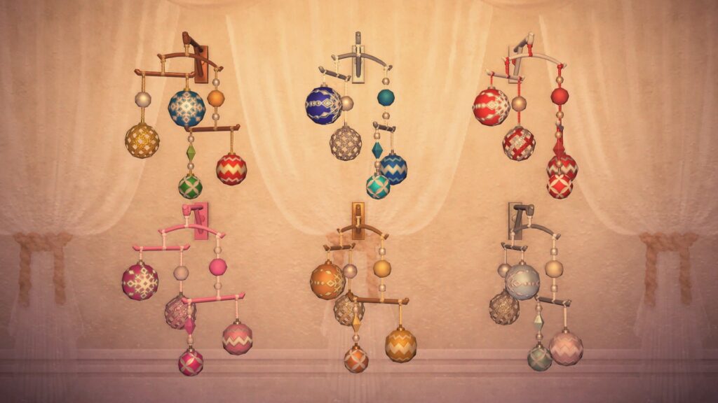 クリスマスにはかべかけソックスをクリスマスなかべかけソックスに変えて、オーナメントのモビールをつけてみてはいかがでしょうか。