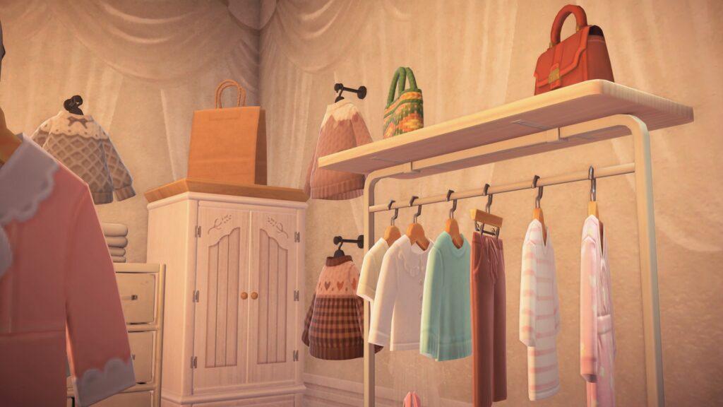 私はシェルフつきハンガーラックの上にダイヤがらかごバッグとレザーのハンドバッグを置いていますが、お好きなものをぜひ。